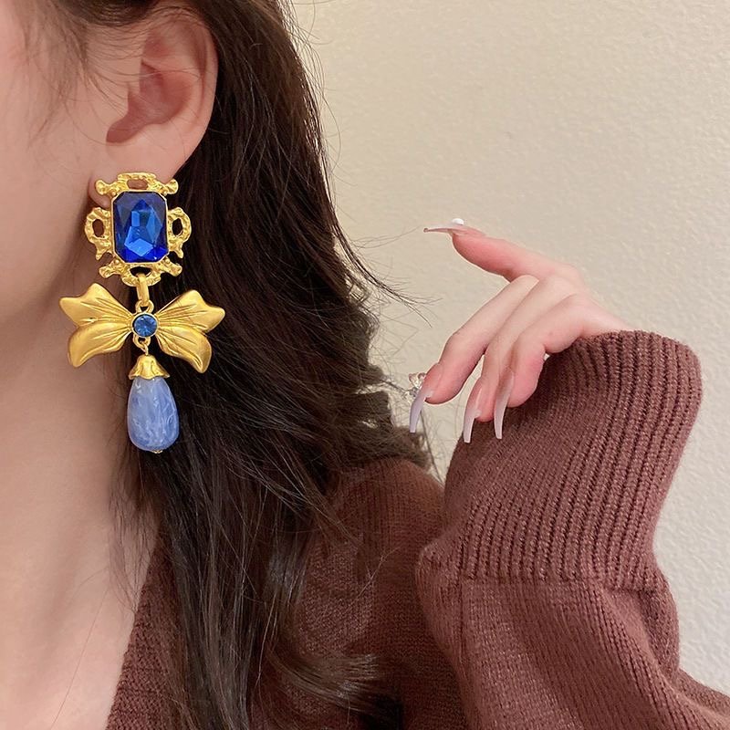 925 silver diamond bow earrings retro quantity