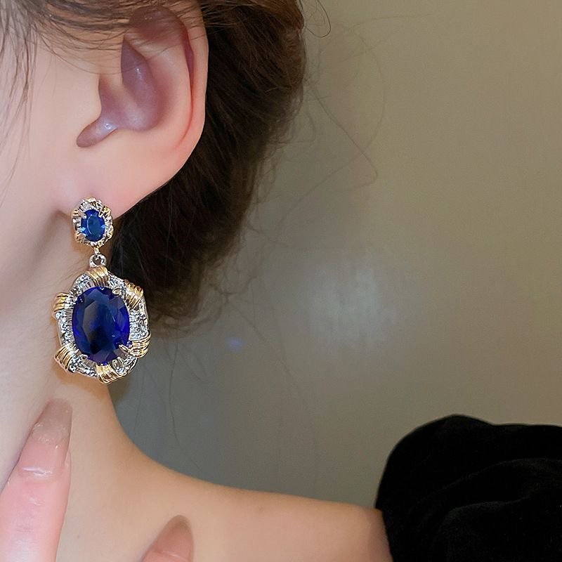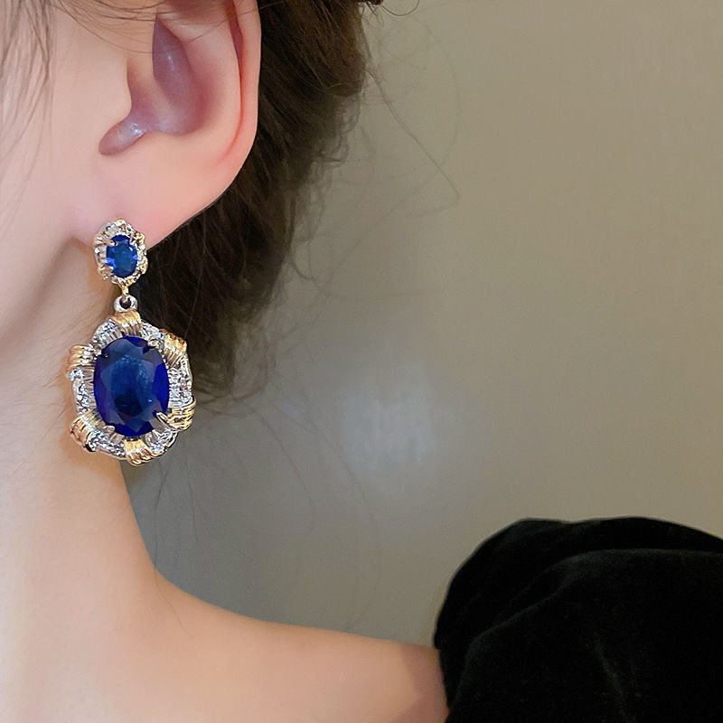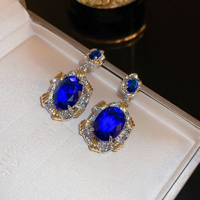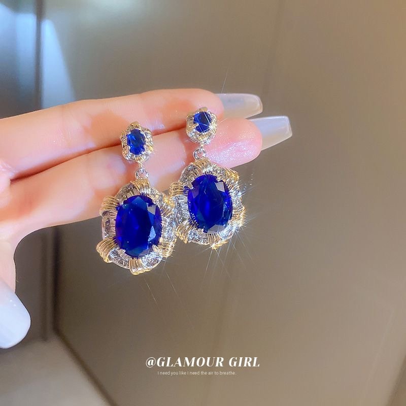 Silver Needle Heavy Industry Elliptic Zircon Earrings French quantity