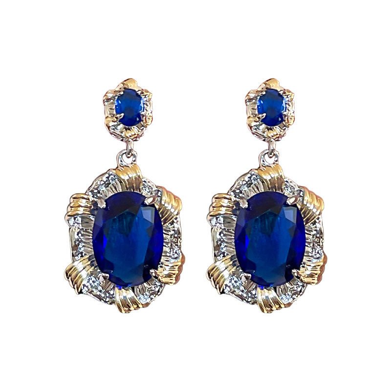 Silver Needle Heavy Industry Elliptic Zircon Earrings French